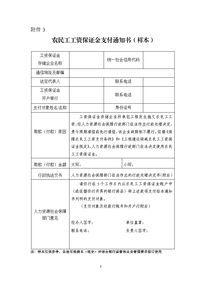 3.农民工工资保证金支付通知书(样本)