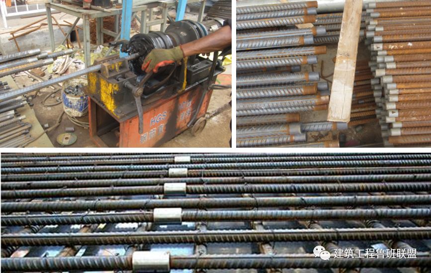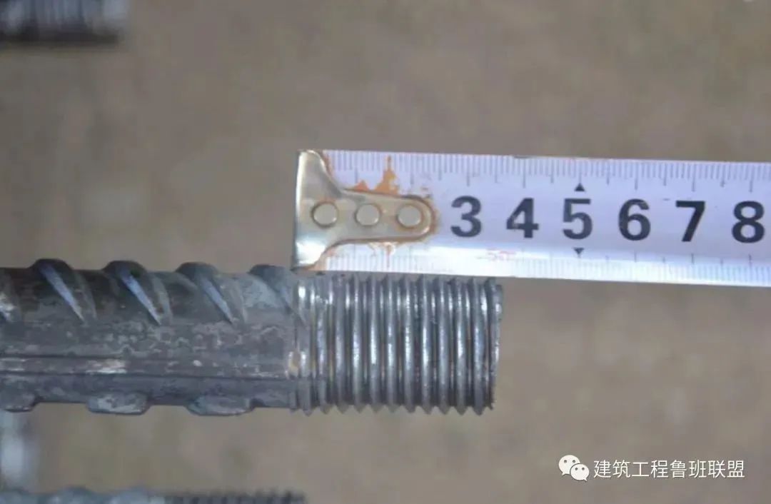 3、钢筋丝头的加工长度一般比公正差(套筒长度的一半)多两个丝(完整的丝扣圈数)。