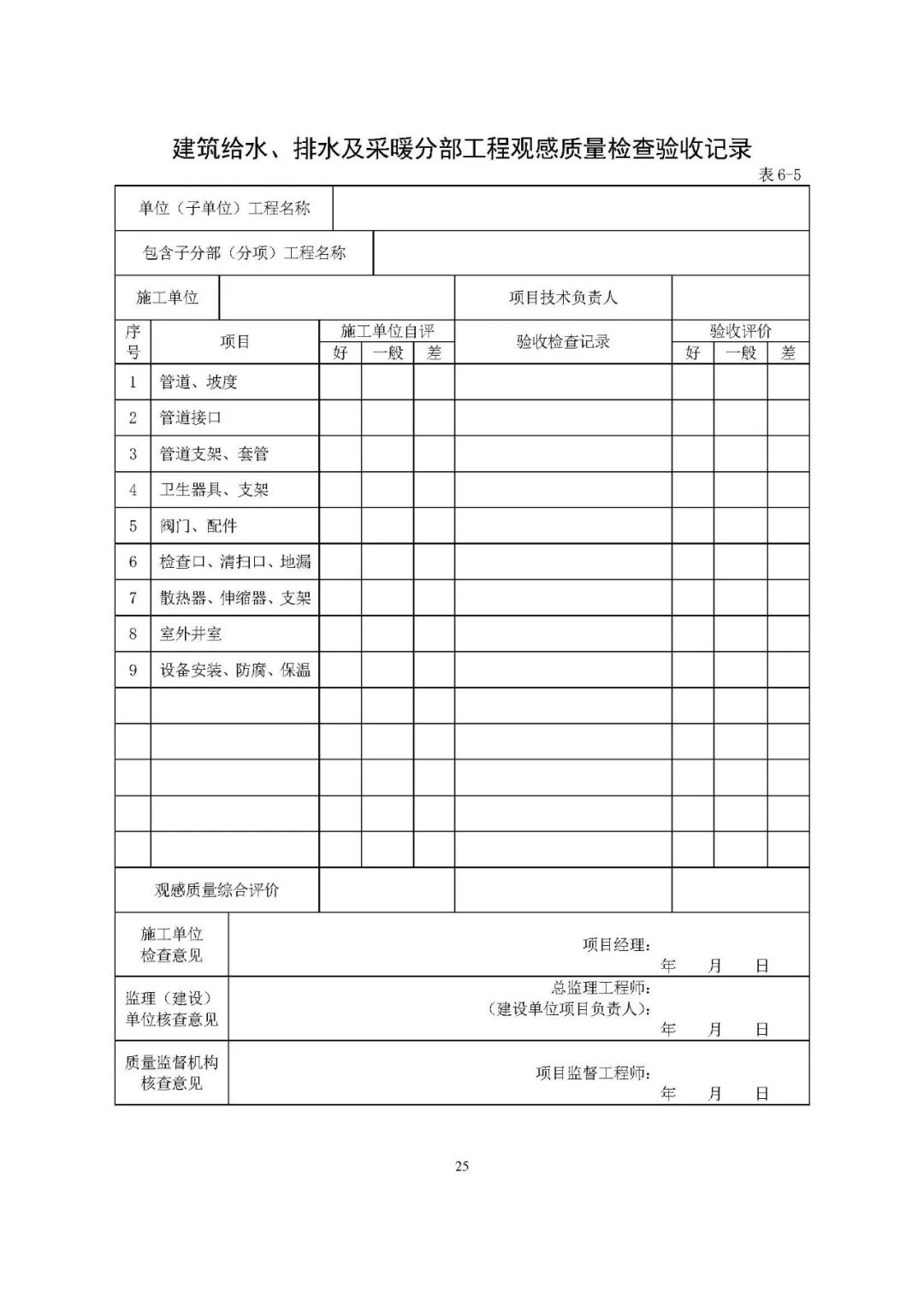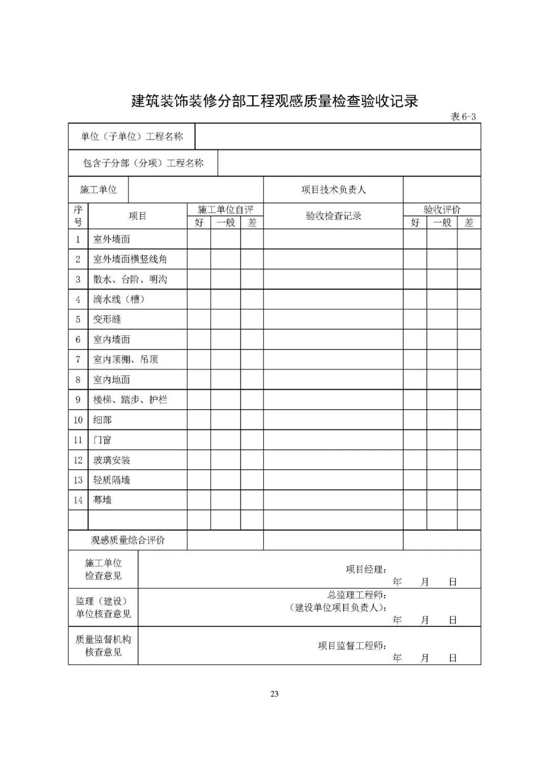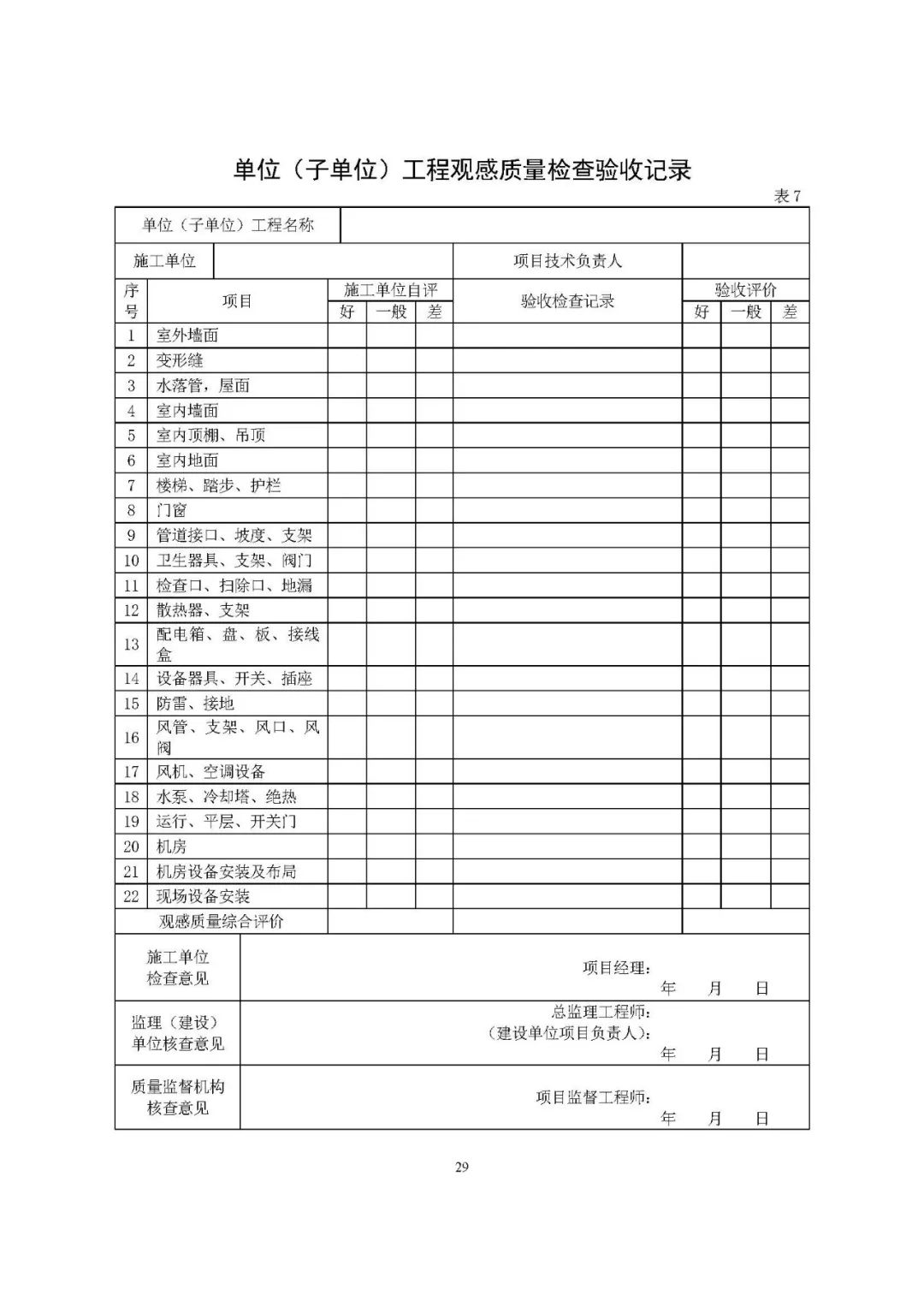 观感质量验收表