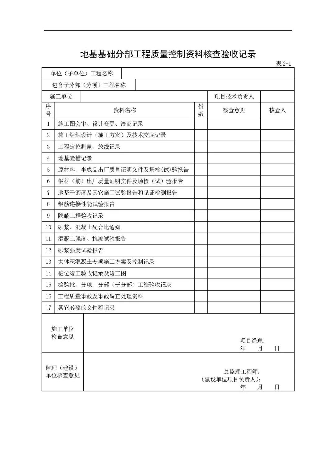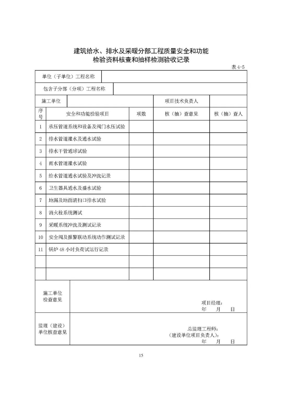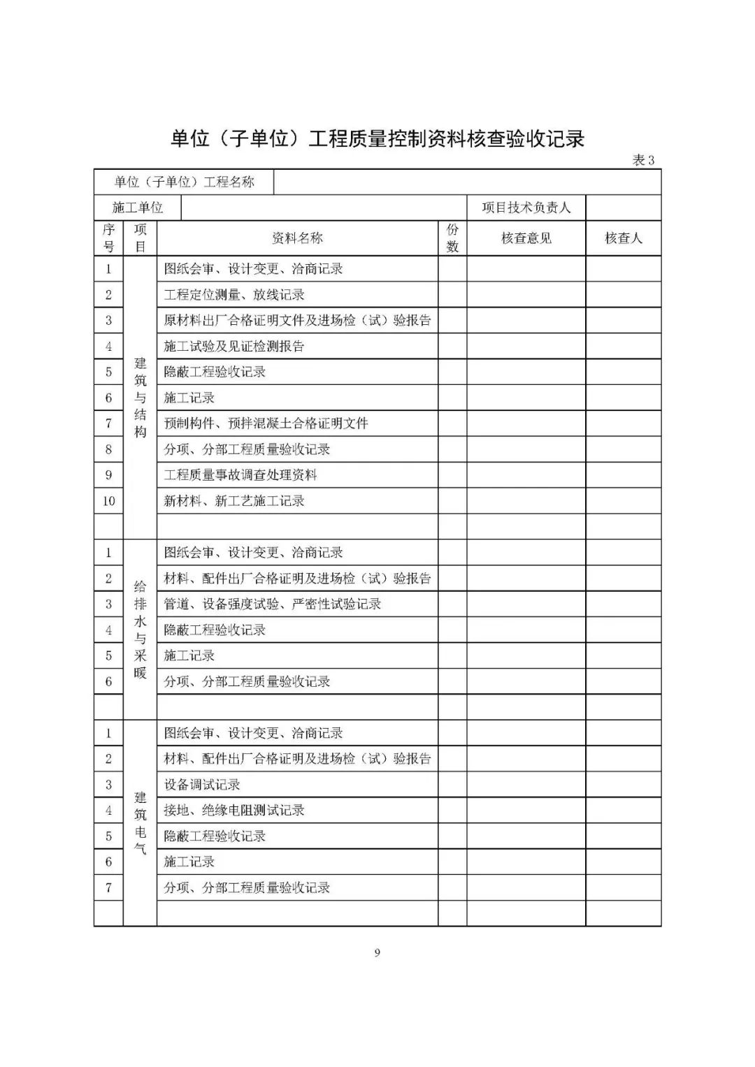 分部工程验收中要求的“质量控制资料”和“安全和功能检验资料”都包括什么?以下表格示例,以供参考。