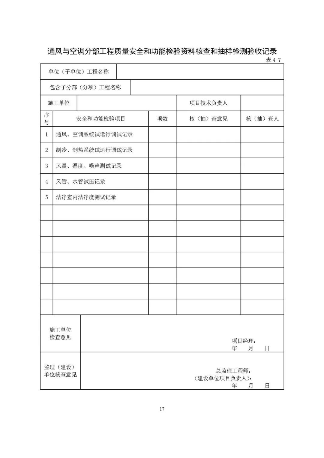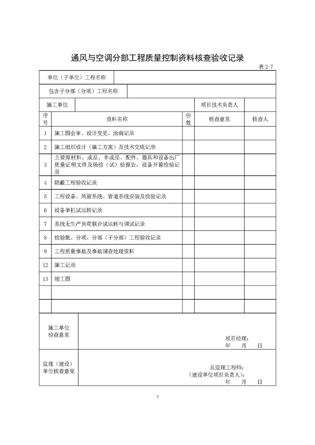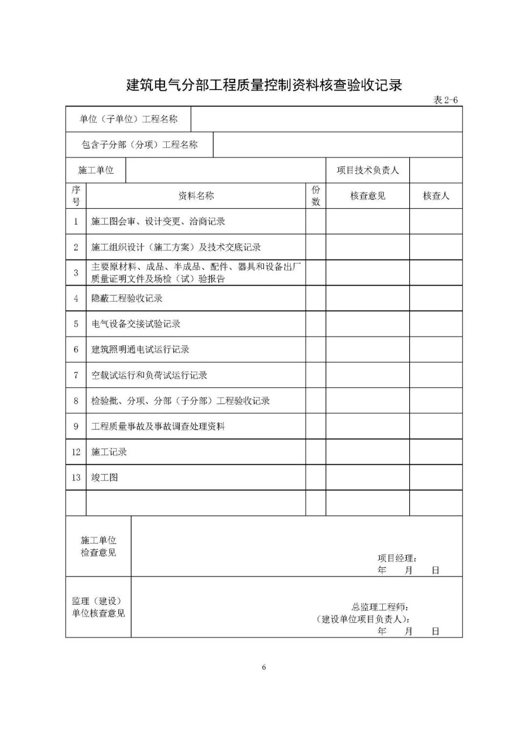分部工程验收中要求的“质量控制资料”和“安全和功能检验资料”都包括什么?以下表格示例,以供参考。