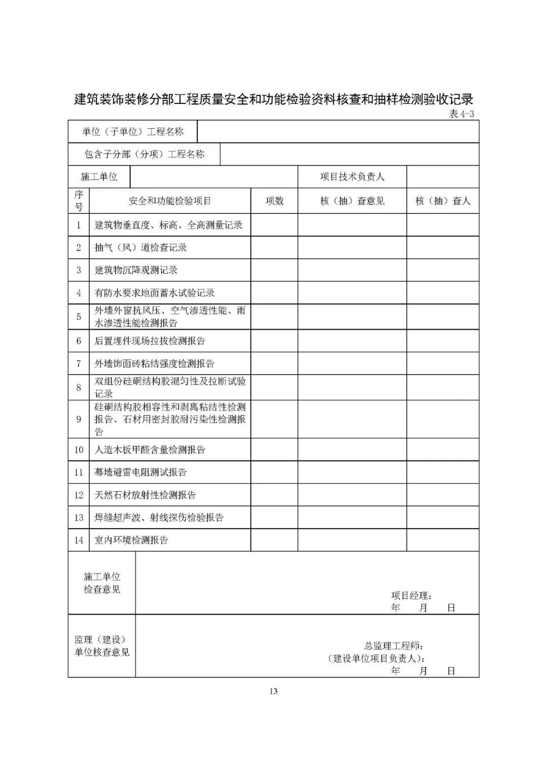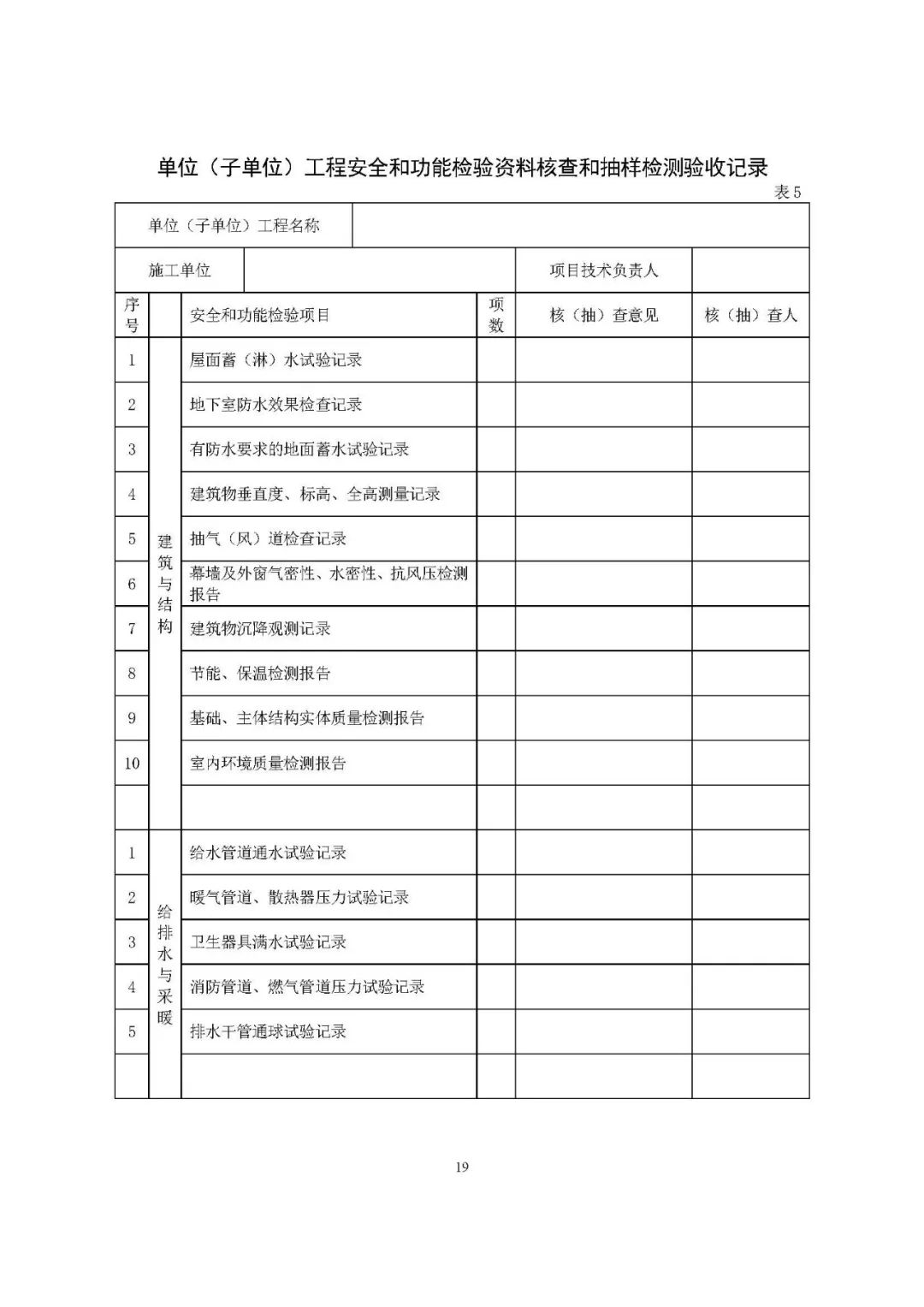 安全和功能检验资料核查表