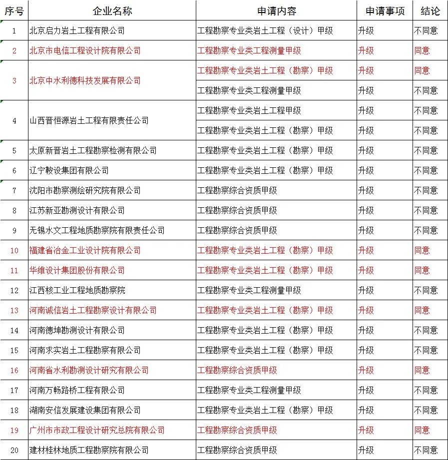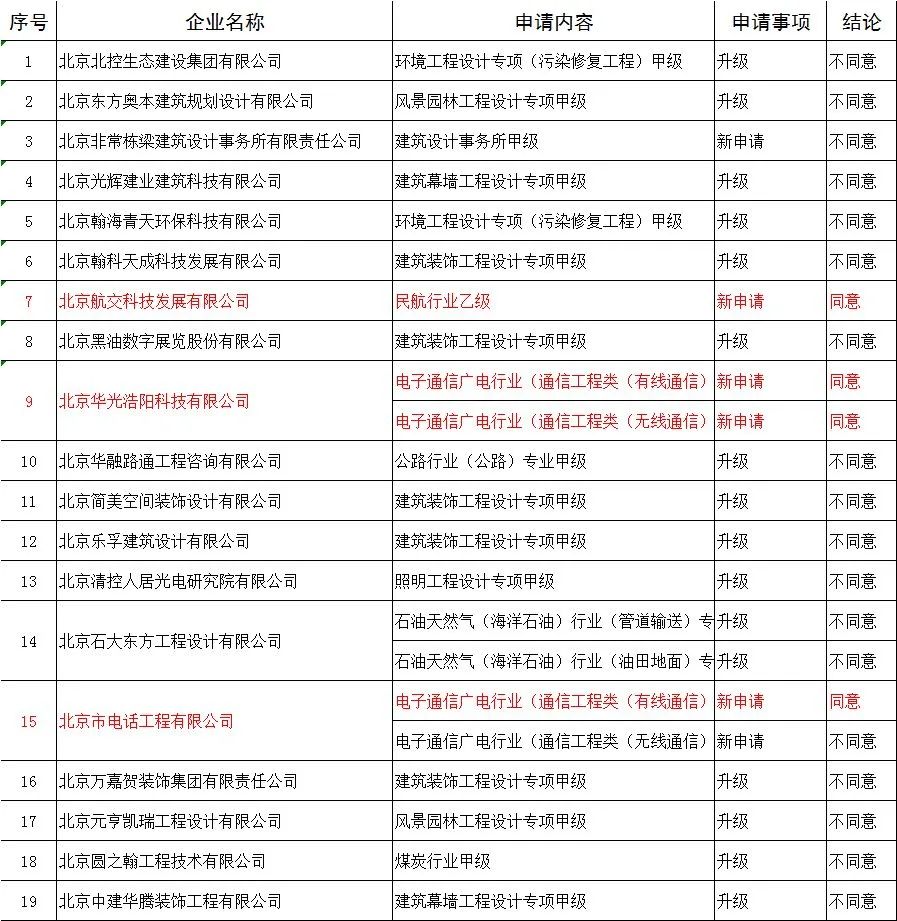 | 13 | 北京中电兴发科技有限公司 | 民航空管工程及机场弱电系统工程专业承包壹级 | 升级 | 不同意 |