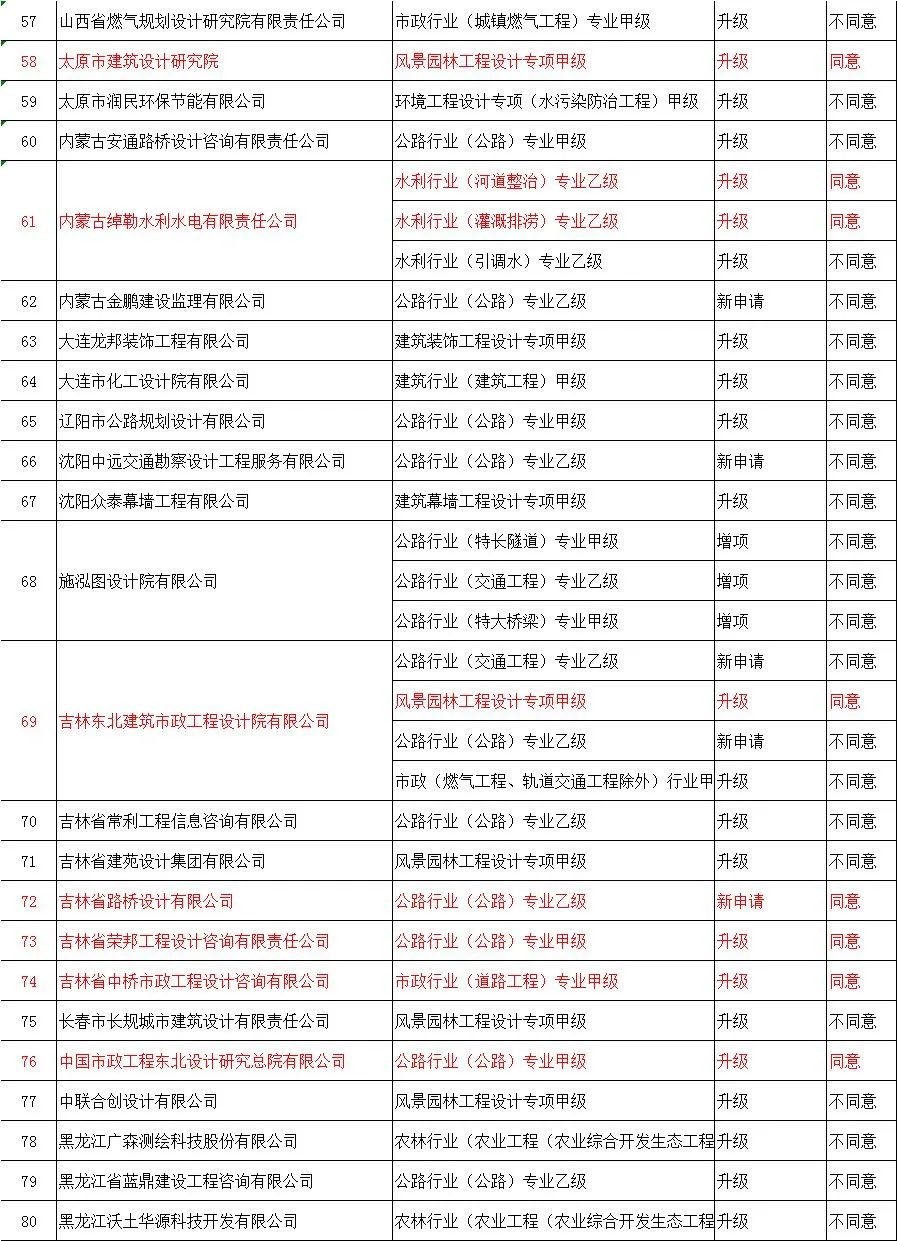 | 37 | 山西得财路桥有限公司 | 公路工程施工总承包壹级 | 升级 | 不同意 |