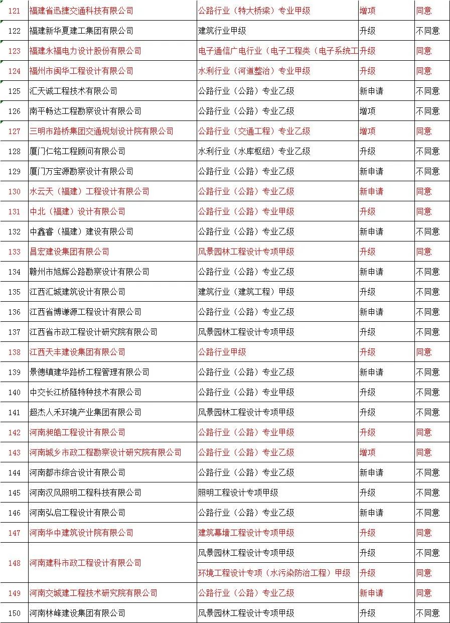 | 109 | 福建新华夏建工集团有限公司 | 建筑工程施工总承包特级 | 升级 | 不同意 |