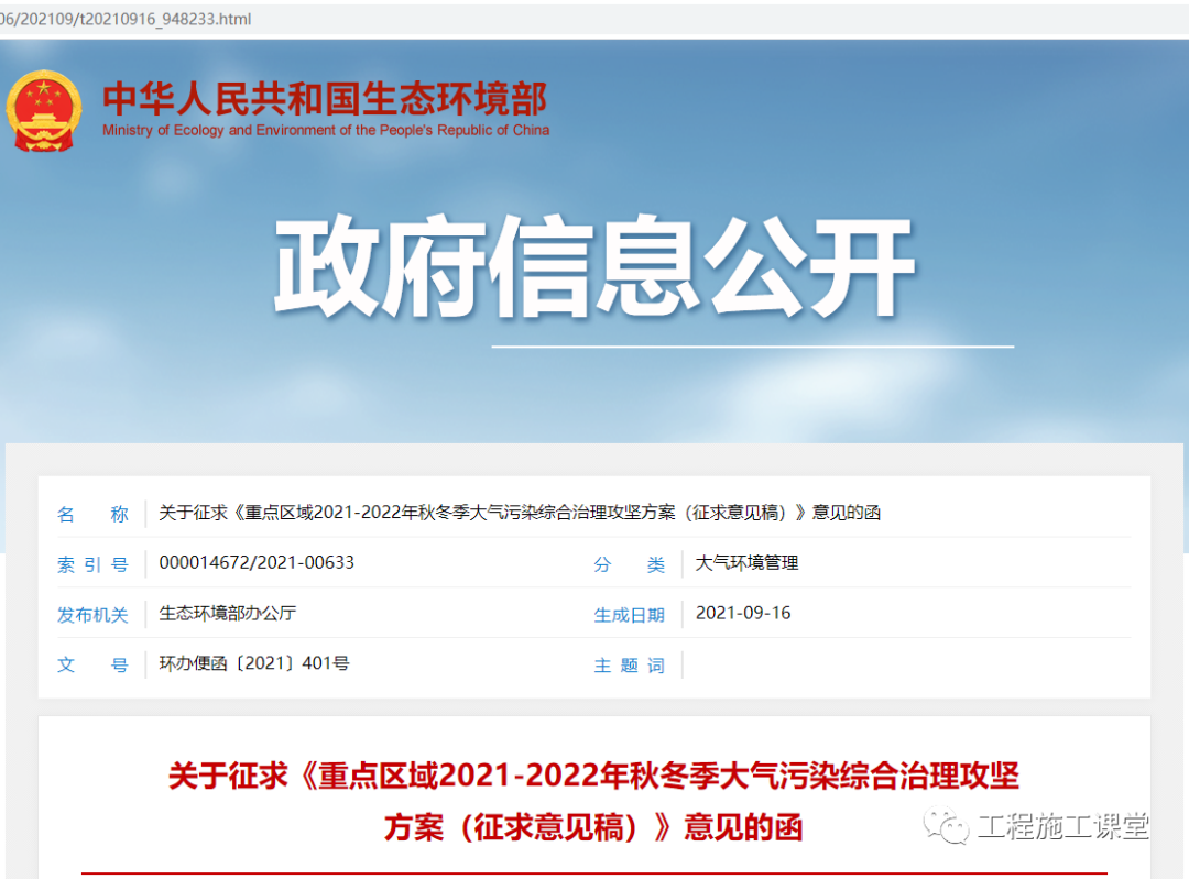 9月16日,生态环境部发布《重点区域2021-2022秋冬季大气污染综合治理攻坚方案(征求意见稿)意见的函》。意见征求截止日期为9月22日,正式稿即将正式发布。