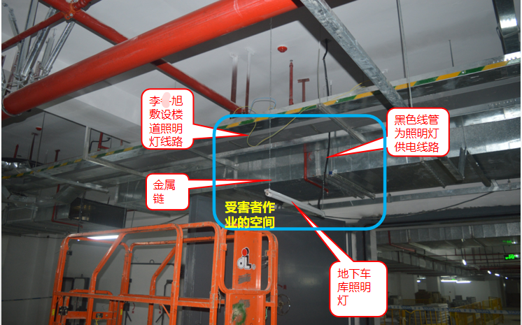 - 工人李某旭在敷设线路作业过程中其左手不慎碰触到金属电线槽,右手掌背侧碰触到带电的涉事照明灯的金属挂链,形成触电回路造成本起事故。