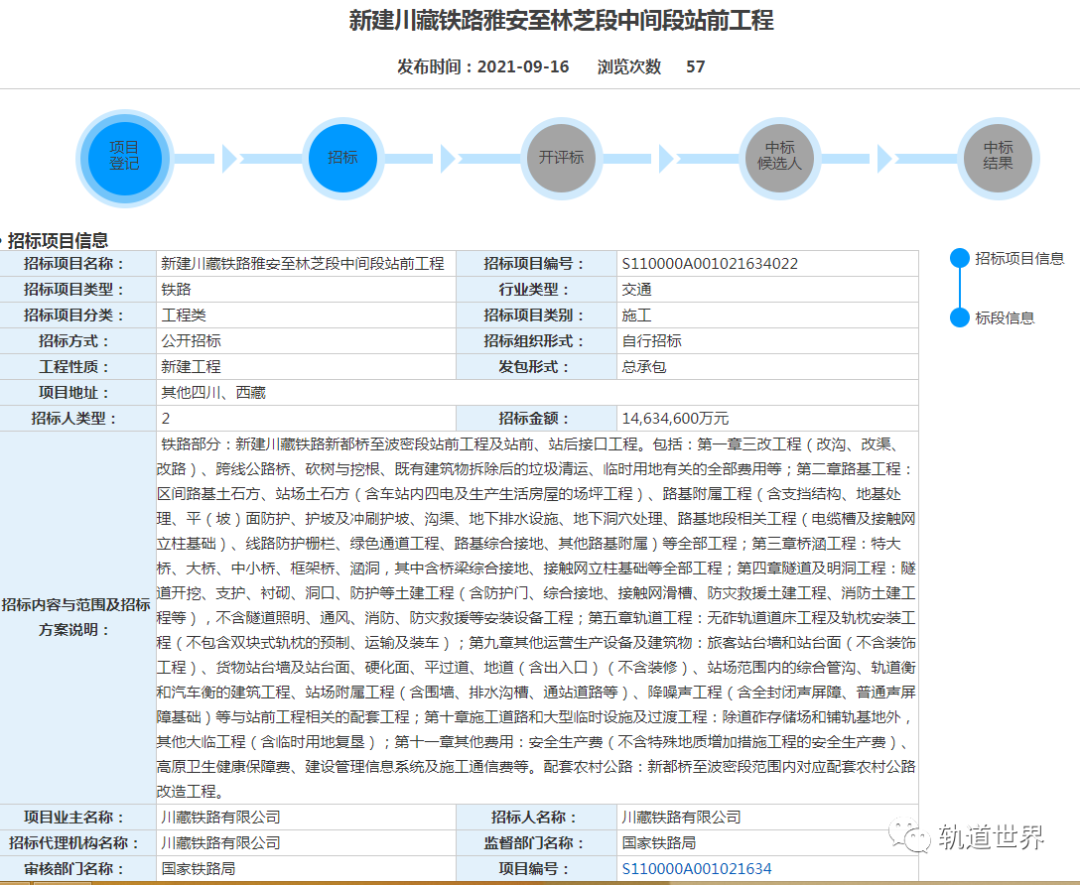 去年11月,川藏铁路雅安至林芝段先期开工段“两隧一桥”色季拉山隧道、康定2号隧道和大渡河特大桥工程正式开工建设。今年4月,雅安至新都桥、波密至林芝段(不含“两隧一桥”)站前工程,即一头一尾两区段正式开工建设。此次招标,预示着川藏铁路剩余段落即将全线开工。根据招标公告内容,川藏铁路新都桥至波密段计划2021年12月1日开工,建设工期11年,计划2032年11月竣工。