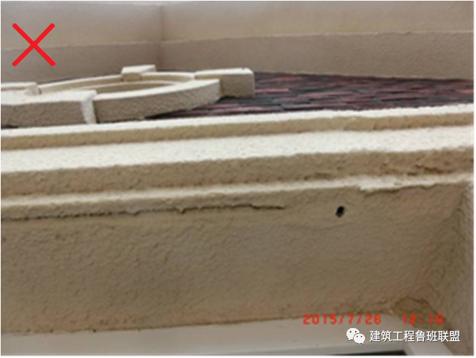 3、块材类饰面层 (如石材),细部材料加工时遗漏滴水线做法。