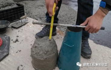 混凝土浇筑过程中及时检查混凝土配合比资料,并现场进行塌落度实验。