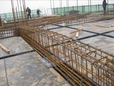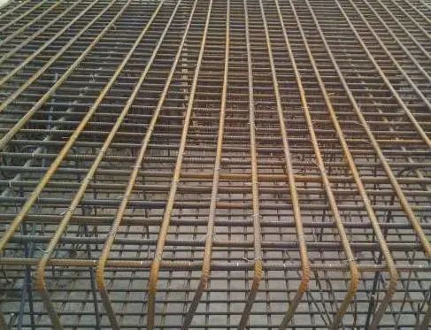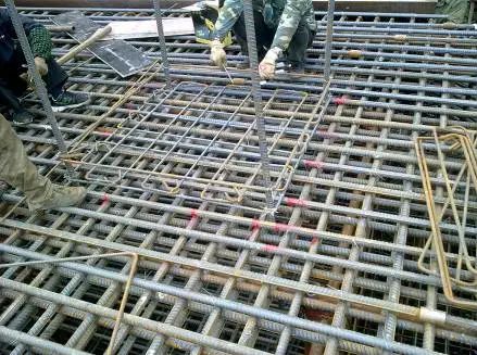 2、根据设计图纸中主筋、分布筋的方向,先绑扎主筋后绑扎分布筋,每个交点均应绑扎。如有楼梯梁时,先绑梁后绑板筋。板筋要锚固到梁内。