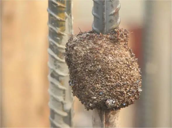 2 | 直螺纹接头露丝没拧紧或钢筋接头搭接不够 |