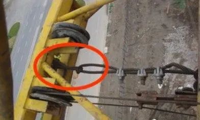 绳卡螺栓松动没有紧固到位,钢丝绳受力后绳卡游动导致两个绳卡紧靠在一起。正确的做法:绳卡的间距是钢丝绳直接的 6 到 8 倍且绳卡和钢丝绳要匹配。