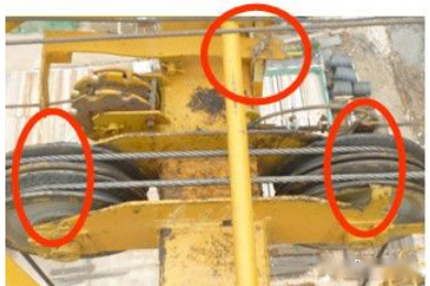 (3)经常外拉斜吊钢丝绳与硬物碰撞磨损出现毛刺。