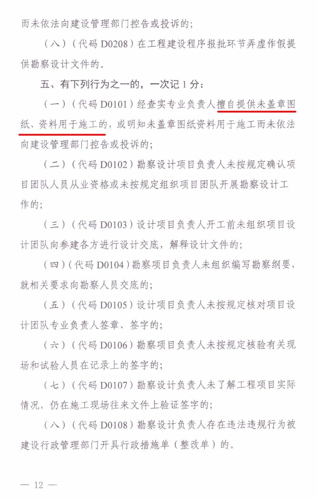 以他人名义或允许他人以本人名义担任勘察设计负责人,或仅挂名而未实际履职的(一次记12分)
