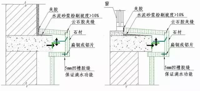 注:室外花岗岩窗台及线脚基层水泥砂浆粉刷坡度大于10%。