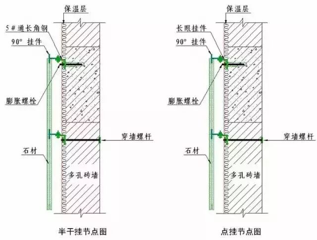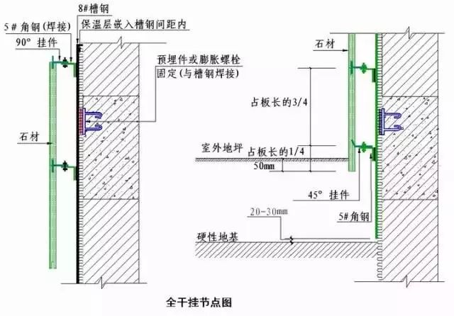 干挂石材节点施工工艺说明: