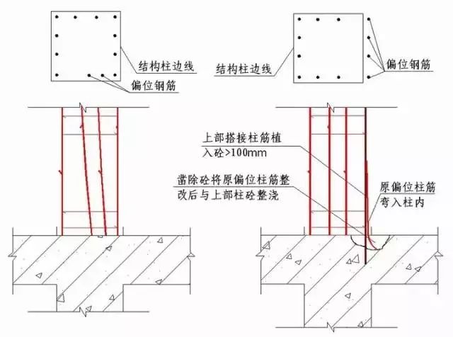 结构柱钢筋偏位处理: