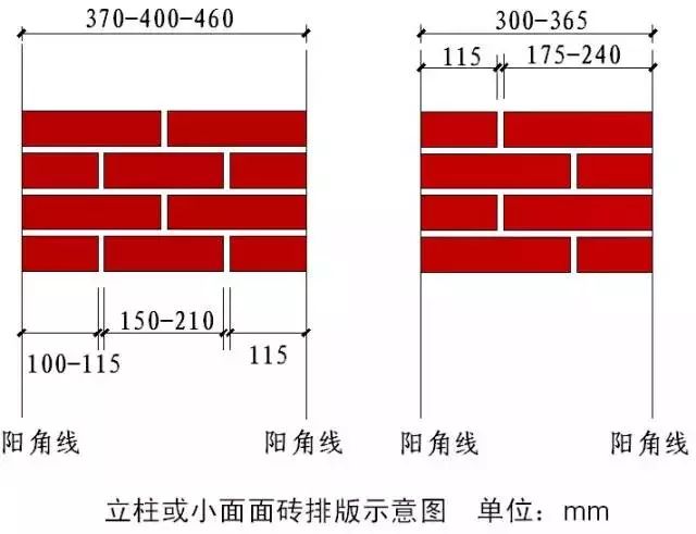 1)在排版时,阳角砖必须大于100mm,窗间墙阳角面砖大于80mm;