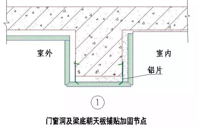 2)门窗洞及梁底朝天板应作铝片或扁铁侧面加固方案施工。