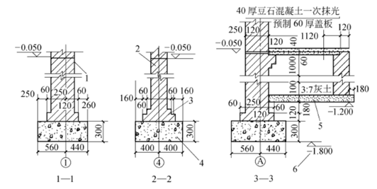 (2)基底标高、垫层的做法、防潮层的位置及做法。