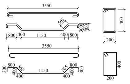 钢筋简图中的尺寸,受力筋的尺寸按外皮尺寸标注,箍筋的尺寸按内包尺寸标注,如图1-5所示。