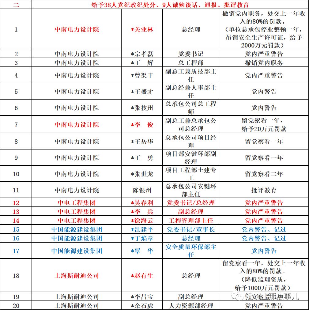 2018年3月20日,住建部发布通告:工程总承包商方中南电力设计院被罚停业整顿1年。