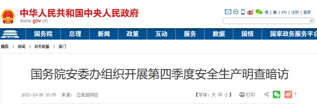 近期,国务院安委办将组织开展第四季度重点行业领域安全生产明查暗访工作。本次共派出9个明查暗访组,对全国18个省份开展检查,于年底前完成。