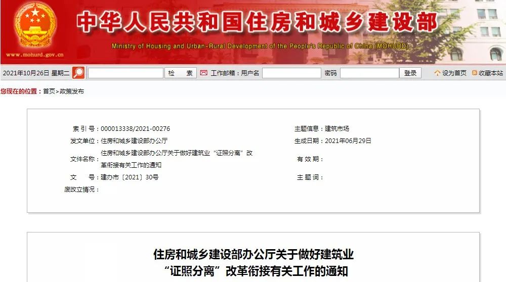 为贯彻落实《国务院关于深化“证照分离”改革进一步激发市场主体发展活力的通知》(国发〔2021〕7号)要求,深化建筑业“放管服”改革,做好改革后续衔接工作,现将有关事项通知如下: