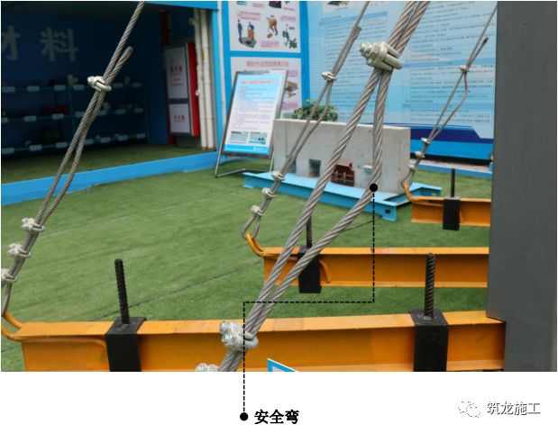 方便检查钢丝绳是否松动,当末端钢丝绳弧度有减小时,说明该钢丝绳绳卡松动,需对卡扣重新排查并拧紧。