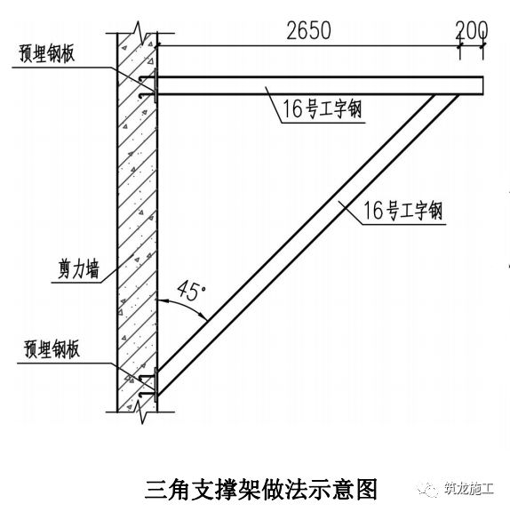 2、悬挑式脚手架转角处三角支撑架构造
