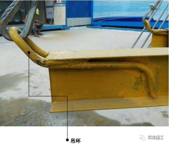 在型钢腹板焊接拉钩,钢丝绳直接拉在拉钩上,钢丝绳在受力时不易滑动,不易磨损,提高安全性能。