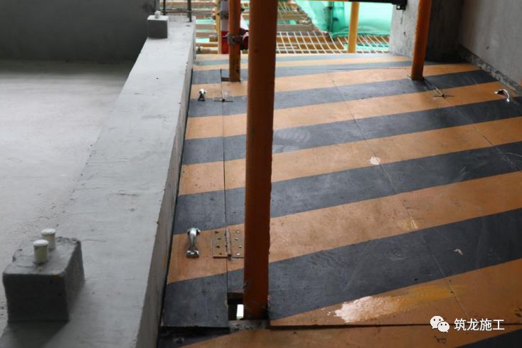 1. 搭设软挑时,软挑采用通长杆并用旋转扣件与脚手架连接作为斜撑杆,斜撑杆与外架倾斜角度为45°~60°,每两跨设置一道斜撑杆,斜撑杆顶部设置两道防护与外架连接,上下分别是密目安全网和水平兜网。