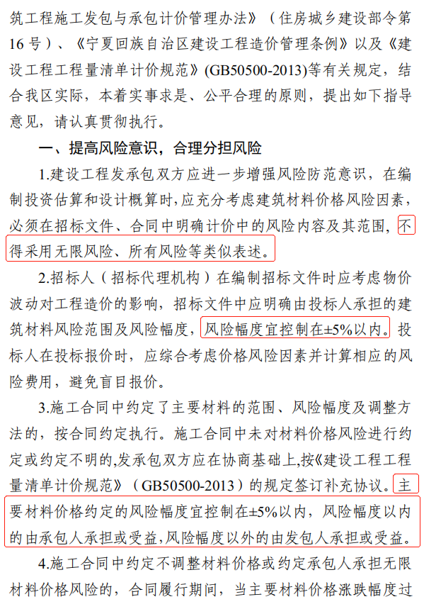 2021年5月14日,甘肃省建设工程造价管理总站发布了关于对建筑材料价格风险管控指导意见的通知(甘建价字〔2021〕15号),建议风险幅度宜控制在5%以内: