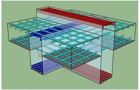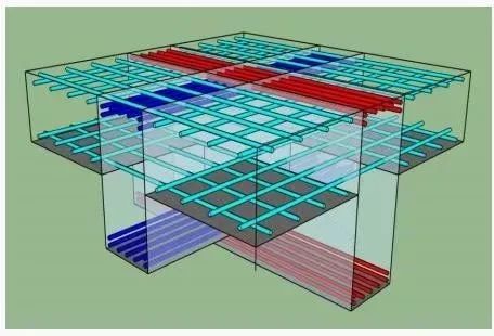 4.3.1 梁板式筏板(底板位)基础钢筋模型图,如图 9-6 所示。