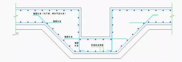 注意:有暗梁时,梁钢筋与筏板钢筋位置关系,按图 9-2 所示施工。