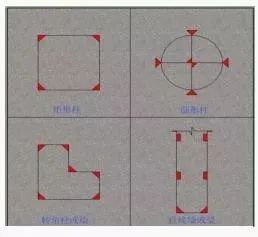 5.1 钢筋放线。筏板钢筋开始绑扎之前,基础轴线弹线完成,基础放线工作必须验收完毕,筏板钢筋位置线已弹好,特别在柱插筋位置、墙边线、基础梁、集水坑等位置线,应用红色油漆在墨线边及交角位置画出不小于 50mm宽,150mm 长标记,对于超厚筏板,在上层钢筋绑完后,应由放线组用油漆二次确认插筋位置线,如图 9-13 所示放线标记样式。