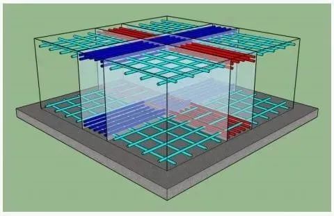 4.1.1 平板式筏板(暗梁)基础钢筋模型图,如图 9-1 所示。