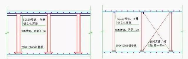 注释 2:对于超厚型筏板,宜选用型钢支撑架,还要经过验算,要有专项施工方案,并进行审批审核通过后实施。型钢支架如图 9-16、图 9-17 所示。