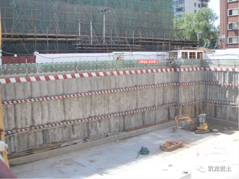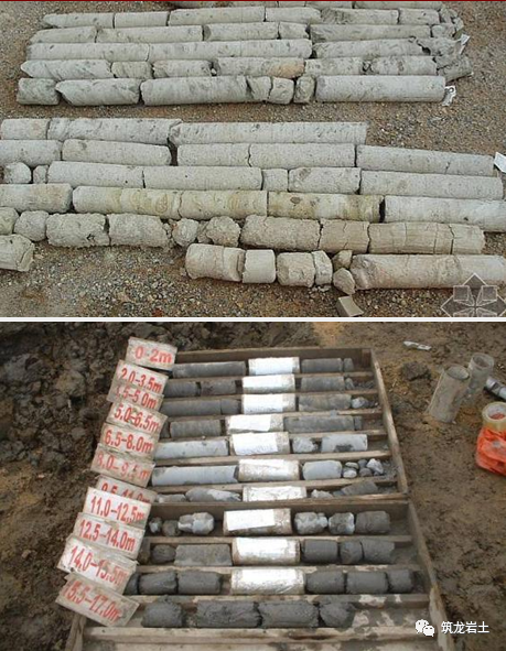 一般情况下,搅拌机对粒径10cm以下的卵石地层亦适用。在成桩过程中如遇较大孤石,则采用加水冲击,提高水泥掺量的方法,若孤石较大无法冲脱,则采用加桩补强的方法。准确定位桩的平面位置,桩机就位严格按桩的平面位置就位;对于有偏斜的桩位采用加桩的措施,在其背面补作加强桩。发生意处停机事件,将钻杆下沉1.0m,重新喷浆搅拌,防止出现断桩或夹层现象,若两桩咬合超过24h,则第二根桩采用增加20%浆量,或采用加桩。 在基坑开挖中发现工法桩有断桩、开叉处,则采用在开挖内侧注浆,外侧旋喷桩止水,并用t=12mm钢板在断桩、开叉处封闭,钢板与工法桩内的型钢满焊。钻孔桩施工时由于砼外溢,造成接面处不规则,易产生大规模涌水、涌砂现象。在钻孔桩与SMW工法桩接头处采取以下技术措施:1) 在接头处的桩增加水泥浆量和搅拌次数,提高水泥掺量并使之与土体充分搅拌,施工中严禁冲水下沉。2) 在接头处外侧作φ650旋喷桩止水帷墙,起止水和补充加固土体作用。3) 在内侧采用t=12mm的钢板将SMW工法桩中靠近钻孔桩的第一根工字钢与钻孔桩主筋焊接,焊接要求为满焊,钢板背后空隙用快凝水泥封堵。1) 有异常时,如施工遇无法达到设计深度时,应及时上报甲方、监理,经各方研究后,采取补救措施。2) 在碰到地面沟或地下管线无法按设计走向施工时,宜与设计单位、甲方、监理共同协商,确定解决办法。3) 施工过程中,如遇到停电或特殊情况造成停机导致成墙工艺中断时,均应将搅拌机下降至停浆点以下0.5m处,待恢复供浆时再喷浆钻搅,以防止出现不连续墙体;如因故停机时间较长,宜先拆卸输浆管路,妥为清洗,以防止浆液硬结堵管。发现管道堵塞,应立即停泵处理。待处理结束后立即把搅拌钻具上提和下沉1.0m后方能继续注浆,等10~20秒恢复向上提升搅拌,以防断桩发生。1、取芯设备:水泥土桩强度不高(一般在0.5-1.5MPa),采用普通地质钻机可满足要求,钻孔位置宜确定在桩中心,保证钻孔有良好的垂直度,防止钻出桩体外。 2、芯样描述芯样描述的主要内容包括:颜色、硬度、芯样完整性、水泥含量、搅拌均匀程度、芯样采取率等,要做好进尺记录。通长取芯时,还要对桩端土层进行描述。 3、抗压试件截取数量:混凝土桩桩长10-30m时,每孔截取三组芯样,一组三块,取三块平均值为该组代表值。三组试件代表值中最小值作为该桩芯样抗压强度代表值;抗压截取位置:上部试件位置距桩顶设计标高不宜大于1倍桩径或1m,下部试件位置距桩底不宜大于1倍桩径或1m。中间一组试件应在3-4m范围内截取。4、抗压试件制作要求 :由于水泥土桩桩身强度远小于混凝土,不能完全照搬混凝土芯样制作质量要求。是将芯样不带水切割成高径比接近1:1的试件,端面修平,即可试压。5、水泥搅拌桩强度至少达到28d的龄期,方能进行基坑开挖,开挖前应采用钻芯法检测成桩质量,钻芯数量不宜少于总桩数的2%,且不应少于5根。6、水泥搅拌桩,应在施工后一周内进行开挖检查或采取钻孔取芯等手段检查成桩质量,若不符合设计要求应及时调整施工工艺。7、水泥搅拌桩28d龄期单轴抗压强度、检测数量要符合设计及规范要求。