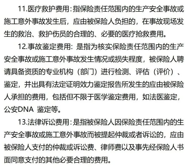 (三)事故抢险救援、医疗救护、事故鉴定、法律诉讼费用等。