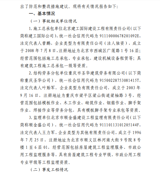 近日,北京市应急管理局发布该事故的调查报告,明确该起事故是一起因违规施工、违规设计,项目管理缺失,现场安全管理不力导致的较大生产安全责任事故。