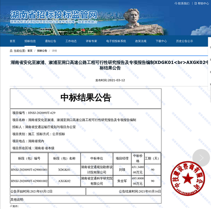 湖南省交通规划勘察设计院有限公司(投标报价68518688元)