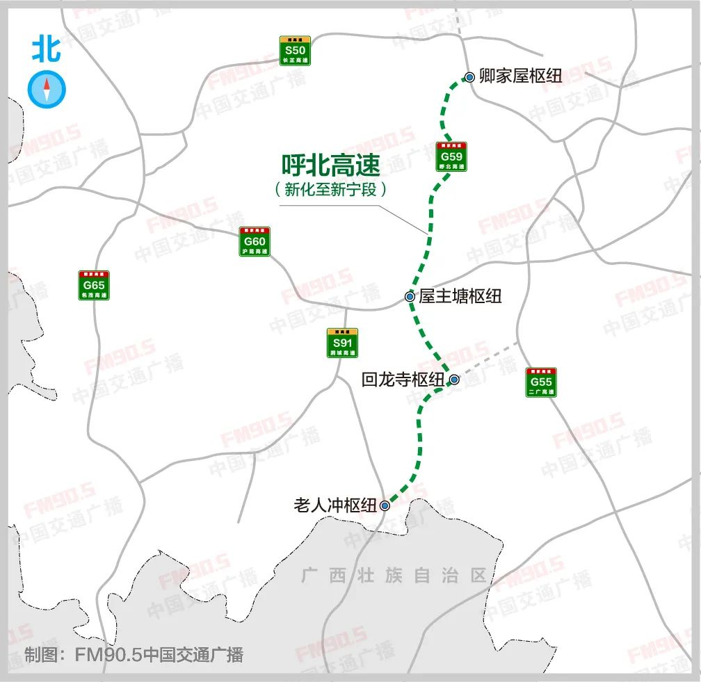 项目主线全长58.766Km,概算总投资75.39亿元,全线采用双向四车道高速公路标准建设,设计速度120Km/h,路基宽度26.5米,设置互通7处(其中枢纽型互通3处),桥梁10568.58米/38座,其中特大桥1266米/1座,大、中桥9302.58米/37座,桥占比17.98%。该项目建成后将持续提升零陵乃至全市、全省开放水平,为零陵高质量发展增添新的动力,将对促进湘南示范区经济一体化发展,对接湖南自贸区郴州片区,改善区域投资环境,增强区域整体竞争力具有十分重要的意义。2021年7月8日,G59呼北高速新化至新宁段、张家界至官庄段PPP项目投资协议签订会议顺利召开,其投资人为湖南高速投资发展有限公司(牵头人)、湖南省高速公路集团有限公司、湖南高速建设工程有限公司、中冶交通建设集团有限公司、中国十九冶集团有限公司、中国二冶集团有限公司、中冶路桥建设有限公司、中冶京诚工程技术有限公司、中国葛洲坝集团股份有限公司、葛洲坝集团交通投资有限公司、中国葛洲坝集团第一工程有限公司、中国葛洲坝集团路桥工程有限公司、湖南路桥建设集团有限责任公司联合体,项目设计工作已有序开展,在为开工筹备中!路线起于新化县青山乡的卿家屋,接已建的G59线琅塘至卿家屋段,止于新宁县城南侧的老人冲,接已建的G59线新宁至湘桂界段,全长约191公里,估算总投资约271亿元。主线采用双向四车道高速公路标准建设,设计速度100公里/小时,路基宽度26米。2021年4月8日,新化至新宁高速公路等工程集中开工仪式在益阳市举行。