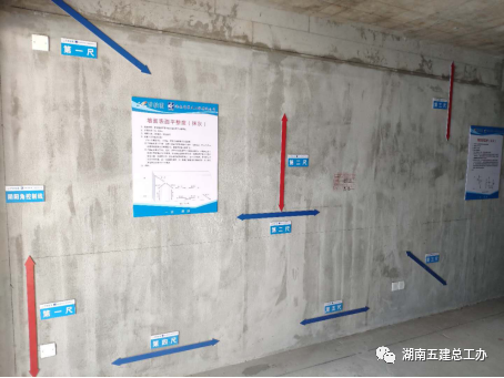 (2)当墙长度小于3米时,同一面墙距两端头竖向阴阳角约30cm位置,分别按以下原则实测2次:一是靠尺顶端接触到上部砼顶板位置时测1次垂直度,二是靠尺底端接触到下部地面位置时测1 次垂直度;