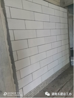 (1)垂直度:用红外线激光仪对砌筑好的墙面进行垂直度检查,要求垂直度误差在5mm内。