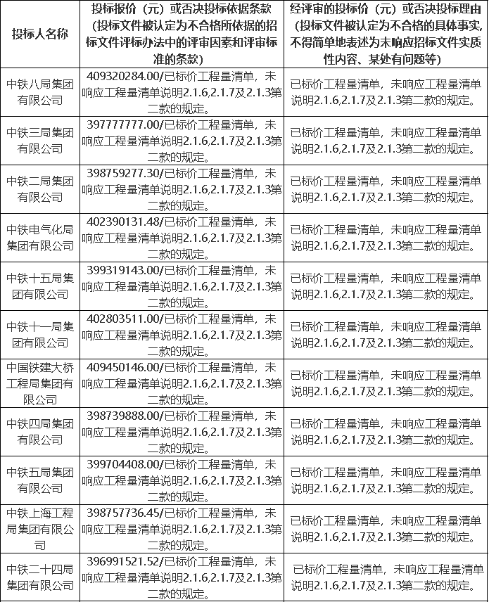 根据公示显示,11家单位废标,废标原因为:已标价工程量清单,未响应工程量清单说明2.1.6,2.1.7及2.1.3第二款的规定。