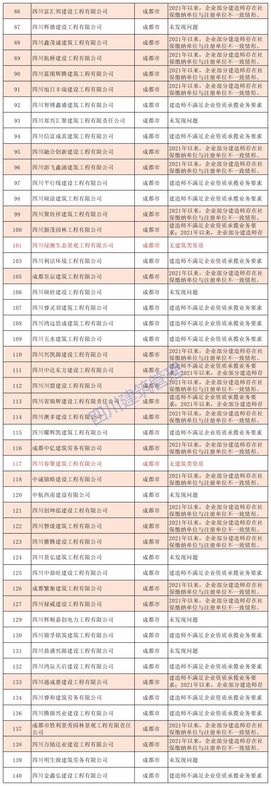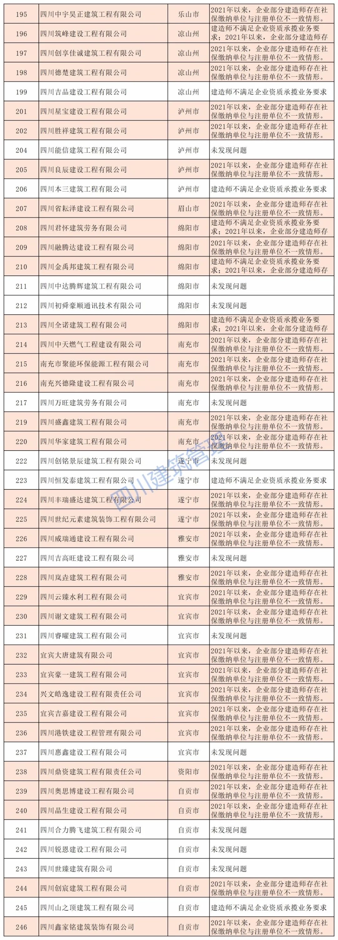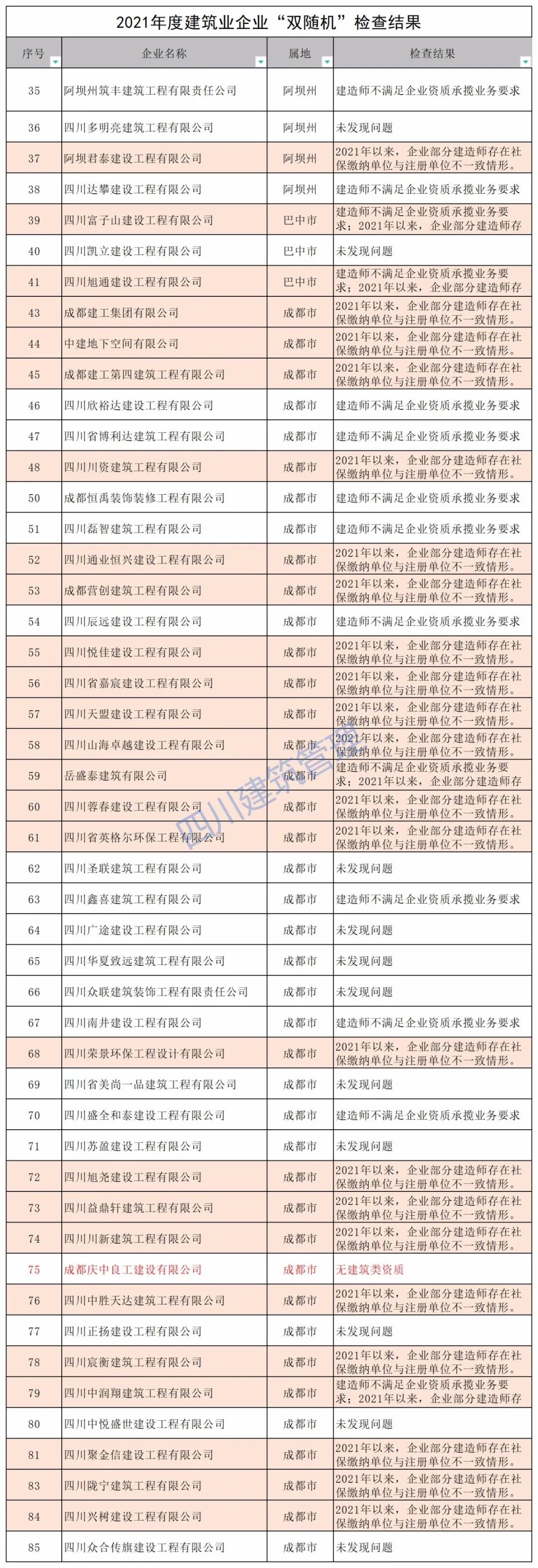 11月17日,四川省住建厅对2021年度建筑业企业“双随机”检查结果公示。