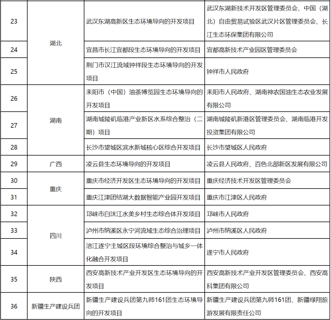 附:2021年生态环境导向的开发(EOD)模式试点项目名单