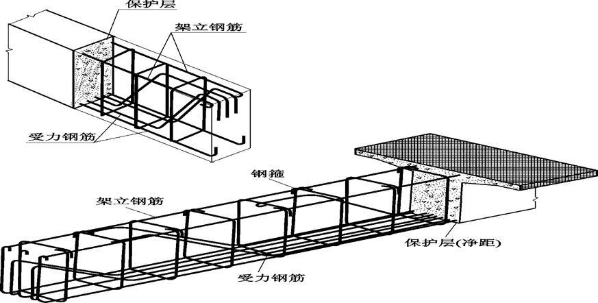 (2)箍筋(钢箍)。用以固定受力钢筋的位置,并承受一部分剪力或扭力。